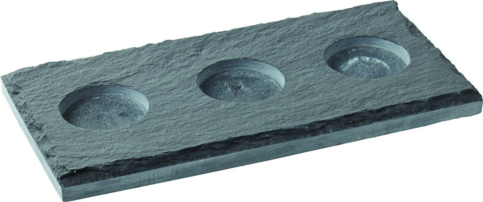Skifer Platte - rektangulær m. 3 fordybninger (fordybning Ø 5 cm)